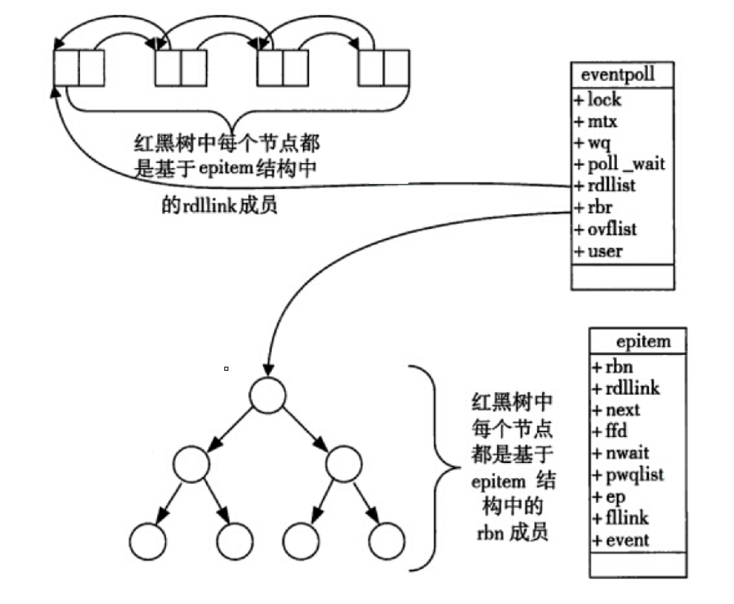 • 当某⼀进程调用epoll_create方法时,Linux内核会创建⼀个eventpoll结构体,这个结构体中有两个成员与epoll的使用方式密切相关.