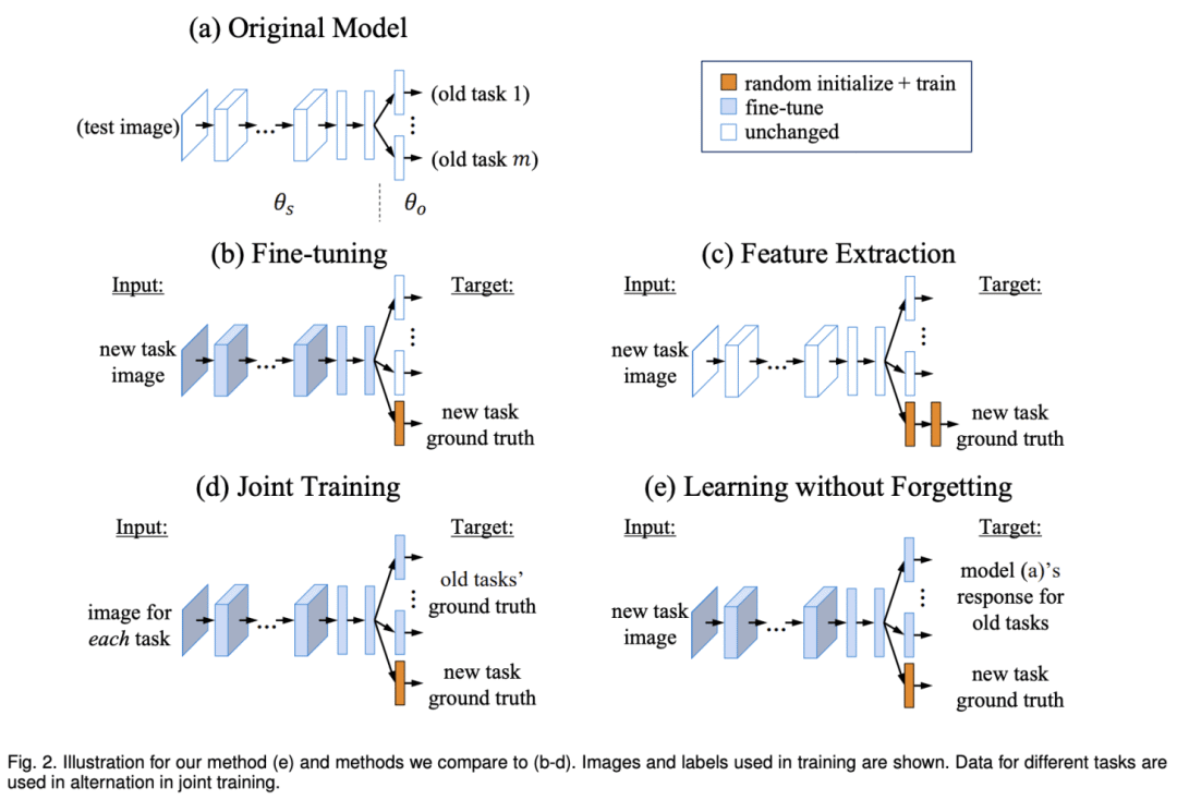 值得注意的是,缺少多步序列学习使得该设置不够贴近现实。文献 [1] 中显示,多轮训练后灾难性遗忘的影响会更大。不过文献 [2] 的领域自适应设置能让我们高效分析不同学习算法的遗忘机制。文献 [2] 考虑以下学习算法: