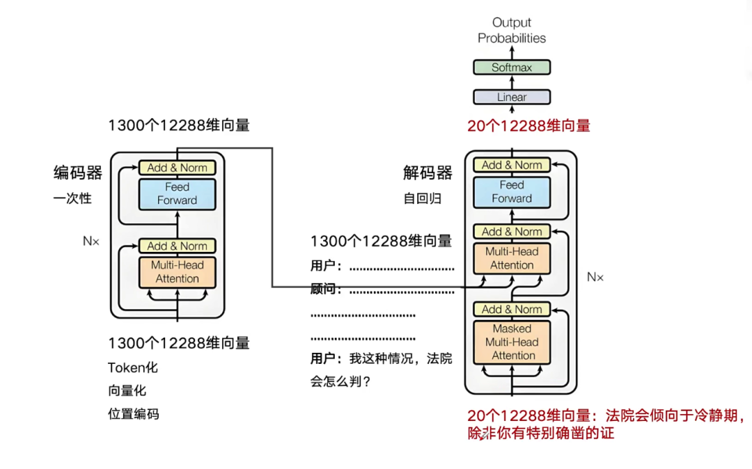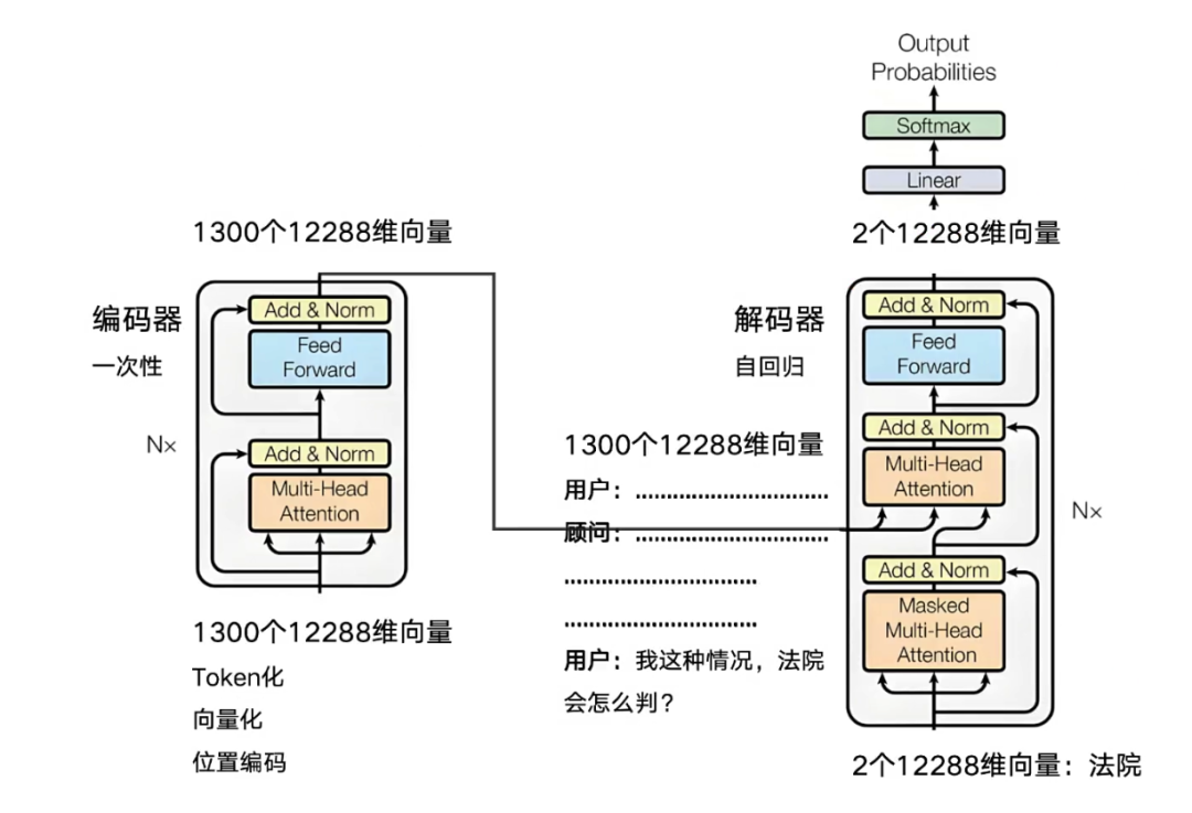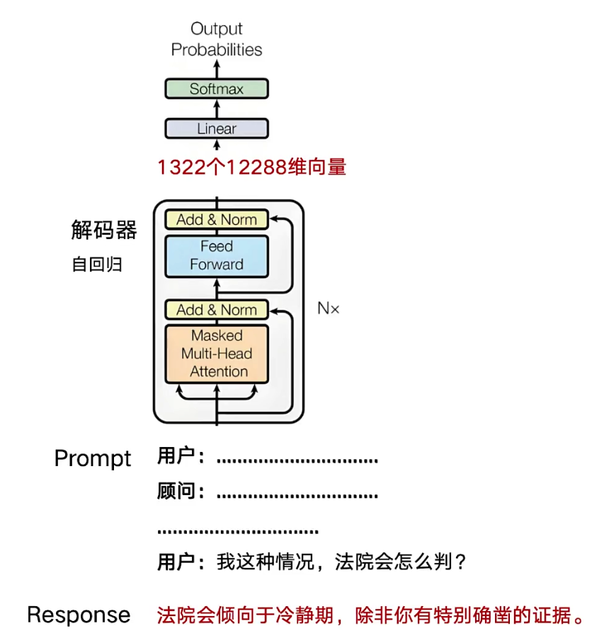 3、此时,我们将最初的1300个向量作为提示词输入解码器,并自动附加一个代表“续写”任务的特殊向量。解码器便会以此为基础,像一位不知疲倦的作家一样持续生成后续内容。正是这种基于海量数据训练出的“下一个词预测”能力,让它在宏观上呈现出理解并回答问题的智能行为。