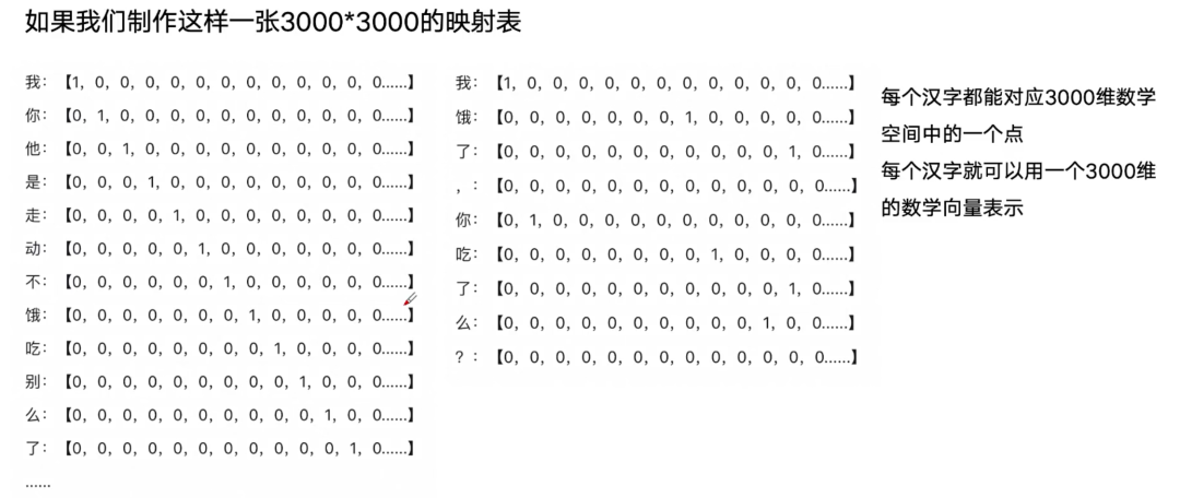 1、维度过高,过于稀疏:容纳3000个汉字就需要3000*3000的映射表,容纳5000个汉字则需要5000*5000的映射表