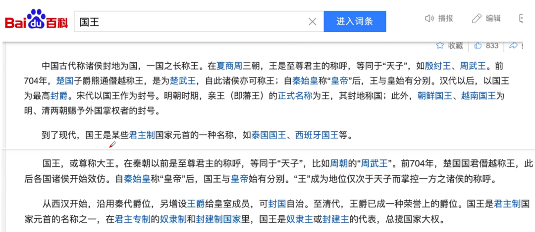 比如国王这个词,百科解释中大量用到王、天子、皇帝…所以他们这些词的关联性应该更好。
