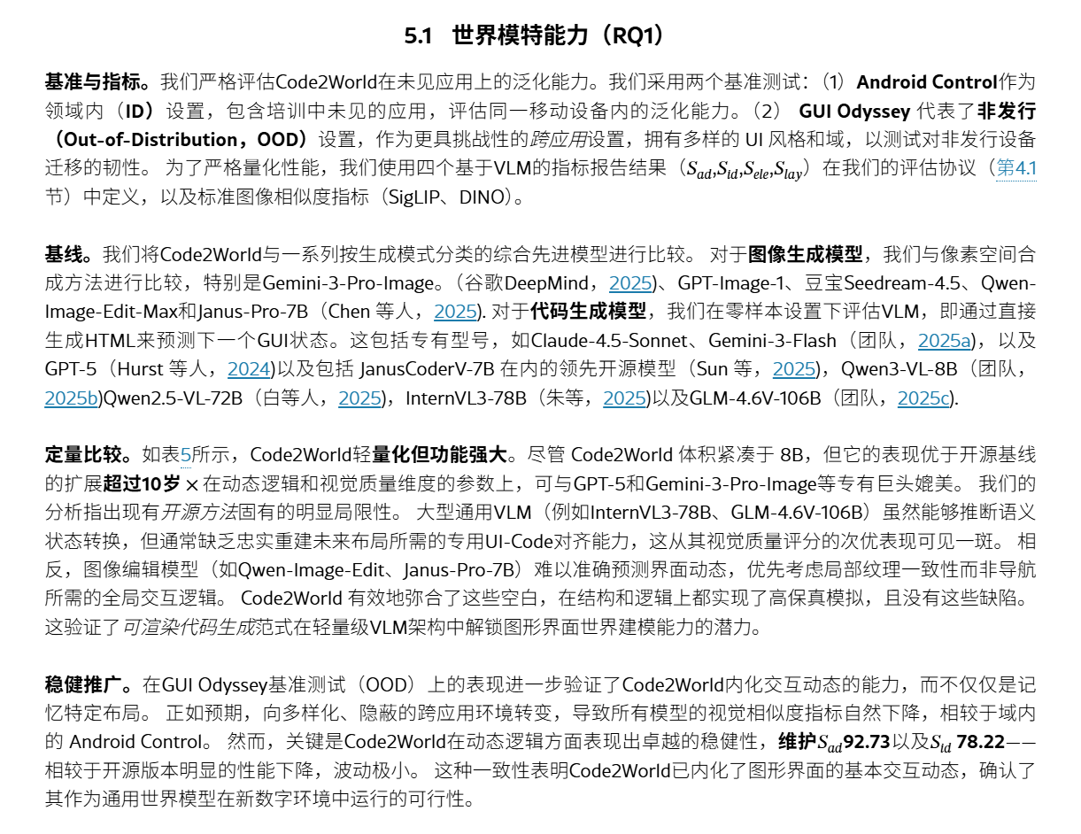 结果:Code2World-8B 下一个UI预测好。与 GPT-5和Gemini-3-Pro-Image 匹敌。