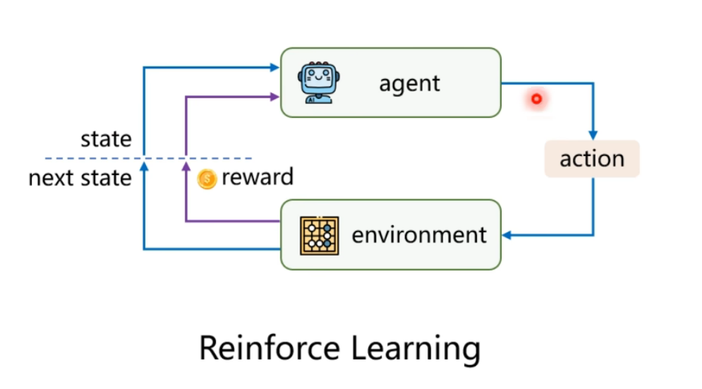马可洛夫链描述的是智能体和环境进行互动的过程。简单说:就是智能体在一个状态S下,选择了某个动作A,进入了另外一个状态S’,并获得奖励R的过程。