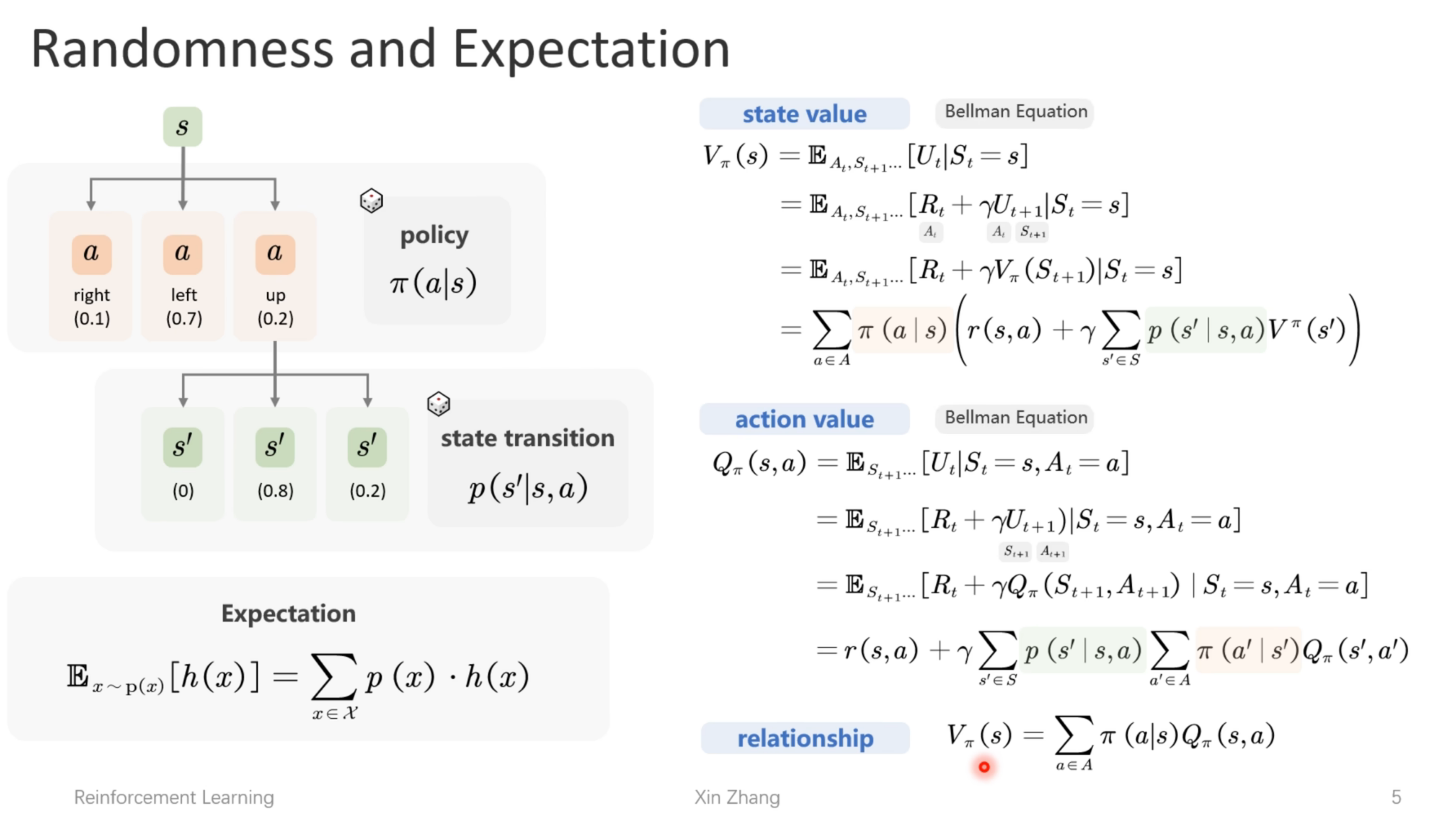 站在当前状态或者称之为初始状态从现在往前看,每个状态可能做出多个动作,而且每个动作可能到达多个状态,图中的Π称之为策略或决策,P称为状态转移概率,我们将这马尔可夫过程称为马尔可夫树。