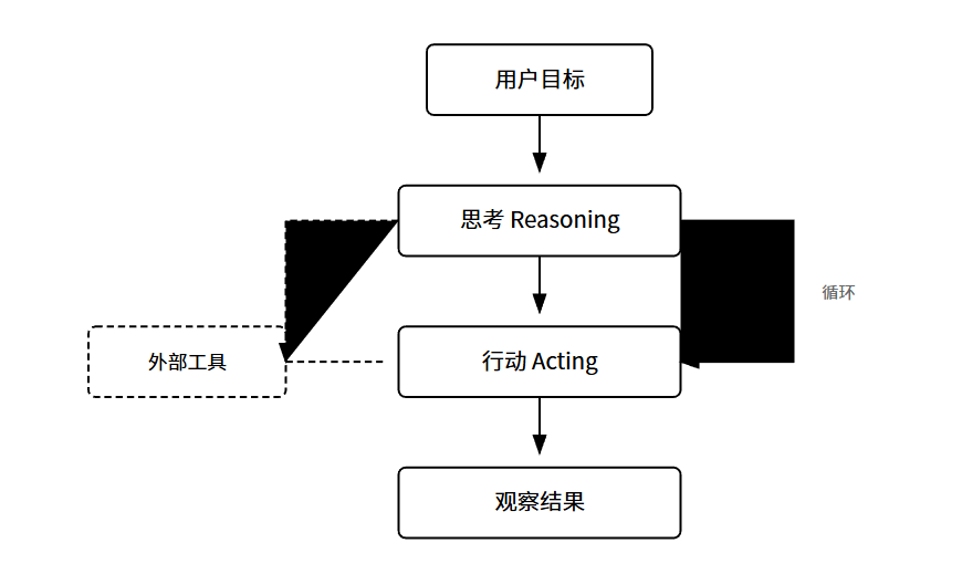 这里面有个关键概念叫ReAct框架,全称是Reasoning + Acting。核心思想是让模型在采取行动之前先想一想,把思考过程也说出来。