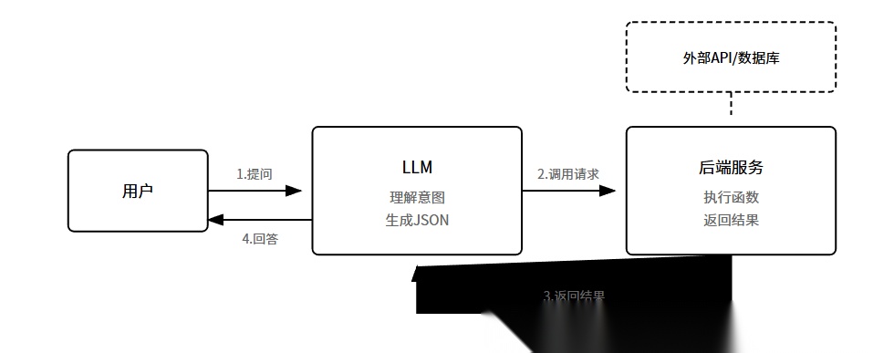 重点来了。模型并不真的执行函数,它只是生成调用请求。真正执行的是你的后端代码。
