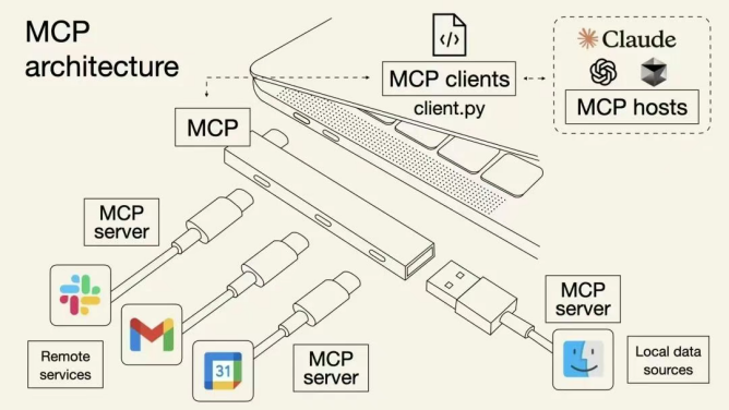 用电脑的“USB-C”接口类比MCP,如下图: