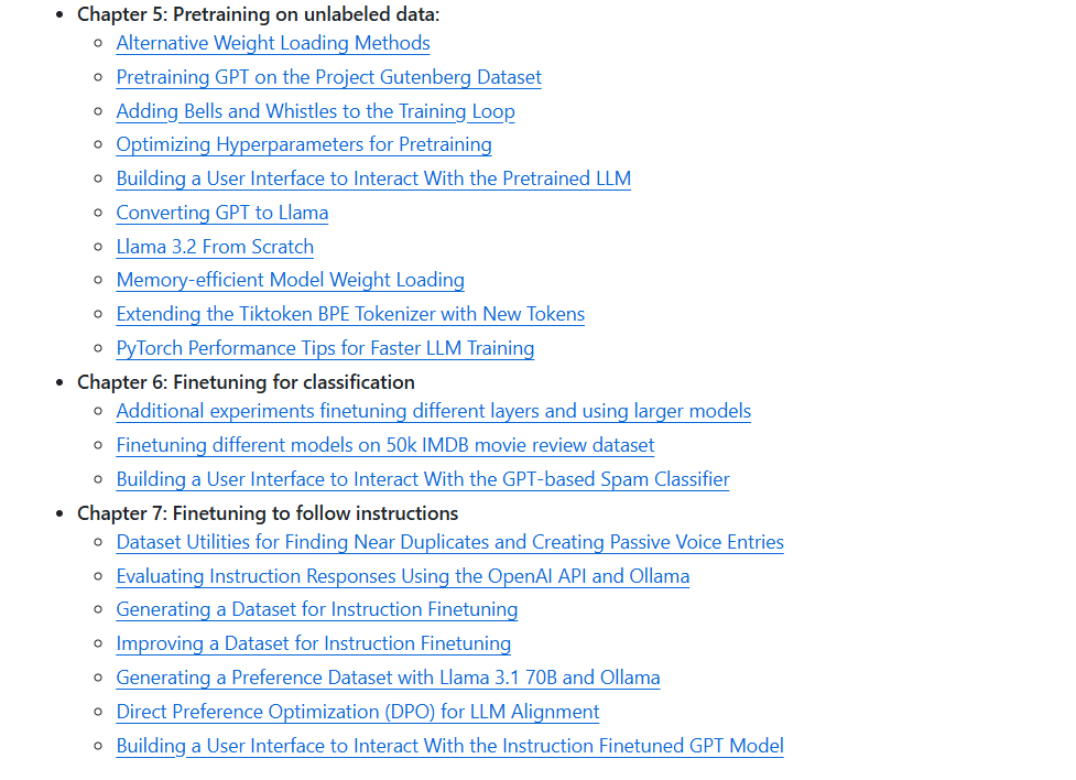 理论看得再多,不如动手写一遍代码。这一周你要深入研究GitHub上最受欢迎的大模型教程项目:LLMs-from-scratch(https://github.com/rasbt/LLMs-from-scratch)。这个项目已经有51.2k星了,质量可想而知。