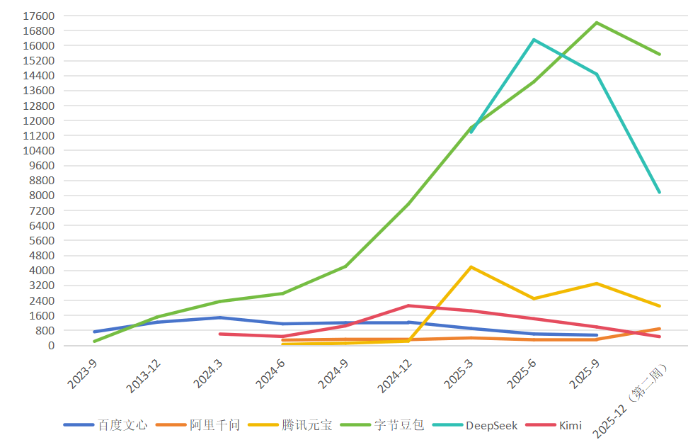 据 QuestMobile 数据,截至2025年12月,国产AI的日活数据其实远未到令人满意的程度。
