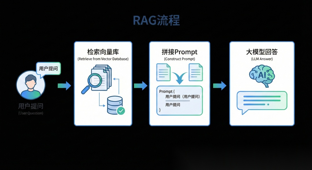 所以,RAG通常配合向量数据库使用。它把文本转化成向量,用向量距离来衡量语义相似度。哪怕字面不同,只要语义相近,就能匹配上。