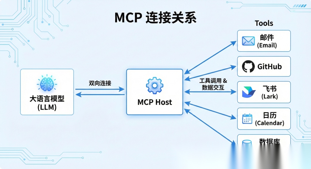 这种让大模型通过结构化消息来调用外部工具的方式,在工程上被抽象成了一套协议规范——MCP (Model Context Protocol)。