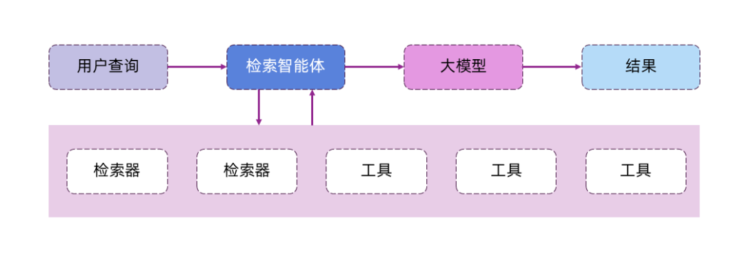 - 自主选择最优方案:检索智能体能根据query的需求,自主选择最合适的检索器、数据源,甚至调用外部工具,不用人类手动指定;
