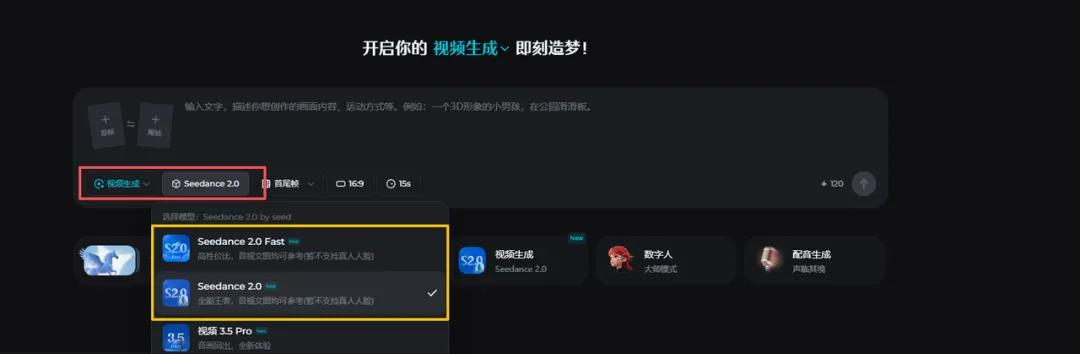 - 登录官网后,进入“视频生成”板块,就能看到【Seedance2.0】模型。