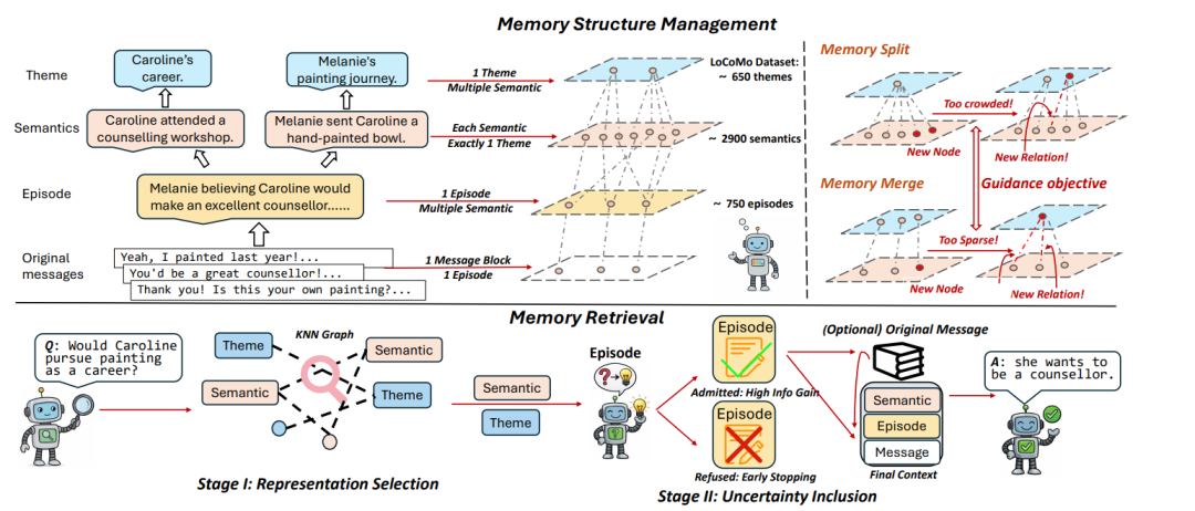 | 阶段II:不确定性感知包含 | 仅当情节/原始消息能降低读者预测熵时才纳入 | 控制冗余,保持证据单元完整 |
