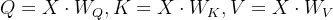 假设序列的长度都为 seq_len、词向量的维度为 d_k,那么经过 Embedding 之后 Q、K、V 矩阵的形状如下: