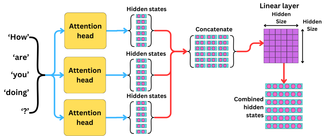 公式可知,Attention 的 3 个核心参数是 Query(查询)、Key(键)、Value(值),它们的命名借鉴了 IT 信息检索系统的设计思想。因为 Attention 计算得出了每个词和其他词的上下文语义关系之后,再反过来查找某个词的关联关系时,本质上就是一次 “信息检索” 过程 —— 用 Q 发起检索,用 K 匹配关联对象,用 V 获取关联的实际语义信息。