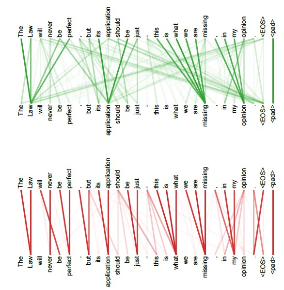 - 经过多层的 Attention 运算之后,注意力得分集中在相似度最高的词之间。