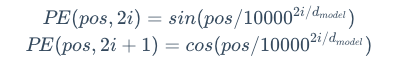 Transformer 采用的是正余弦函数(sin/cos)绝对位置编码,公式如下: