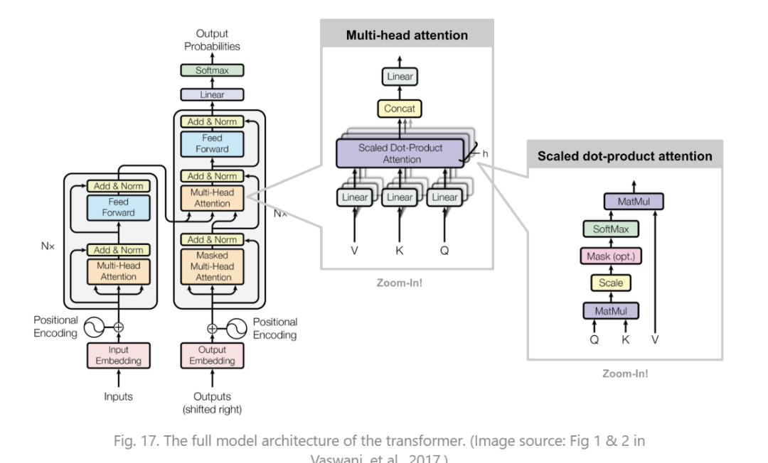 - Softmax:将概率分布向量进行归一化计算,得到最终的 % 概率值(Output Probabilities)。