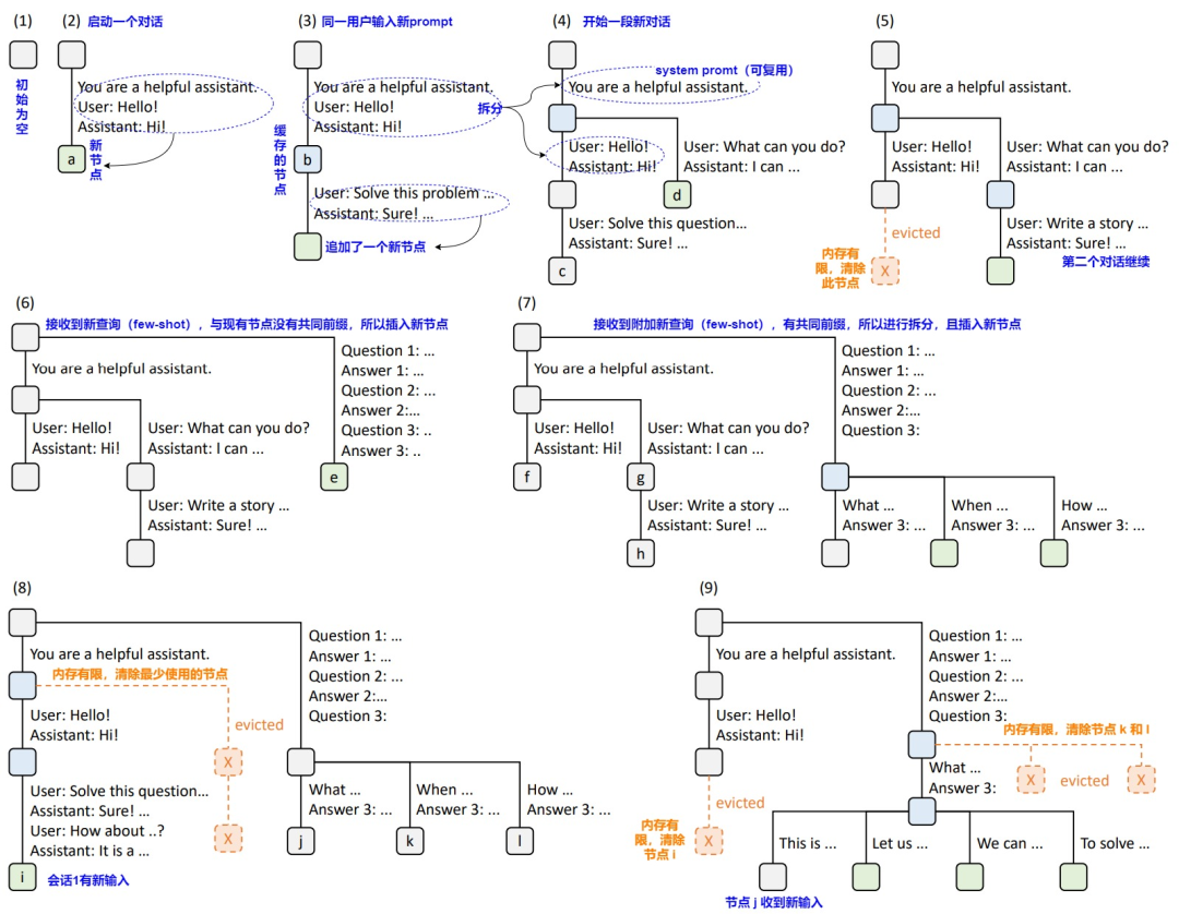 Radix Attention,SGLang 提出(https://arxiv.org/pdf/2312.07104)。提高缓存命中率。