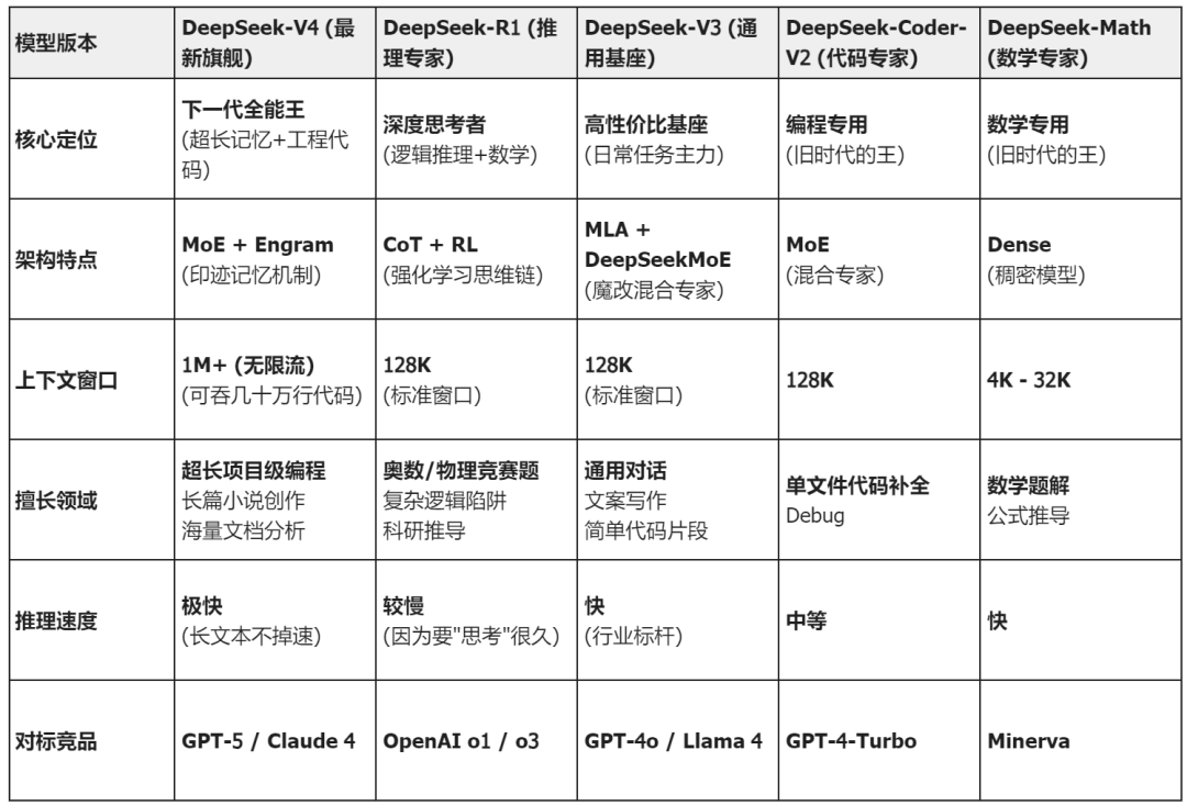以下是Deepseek各模型版本对比: