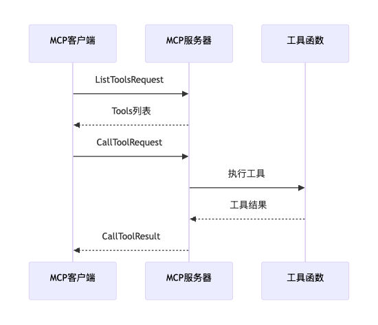 - 工具发现:客户端发送ListToolsRequest请求,服务器返回可用工具的列表和描述信息。这个过程使得客户端可以动态了解服务器提供的工具能力。