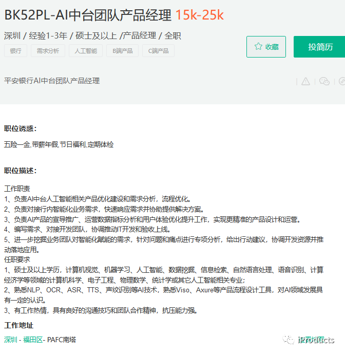 平安银行|AI中台团队产品经理