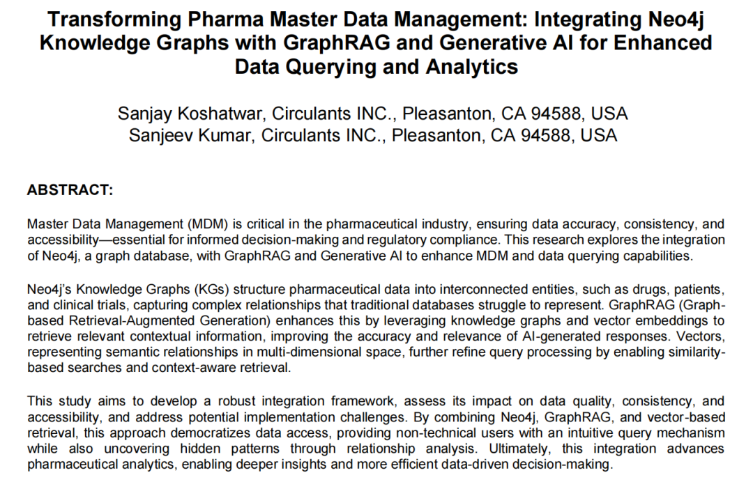 本研究证明,Neo4j、GraphRAG与生成AI的整合重塑了制药MDM,提供更智能的数据生态。 关键启示: