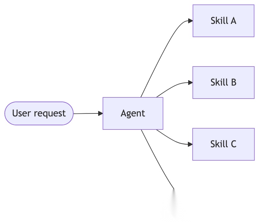 - Skills:这种架构下,各类专用能力被封装为可调用的 “技能组件”,以此扩展智能体的行为边界。这类技能组件本质上是由提示词驱动的专用模块,可供智能体根据需求灵活调用。