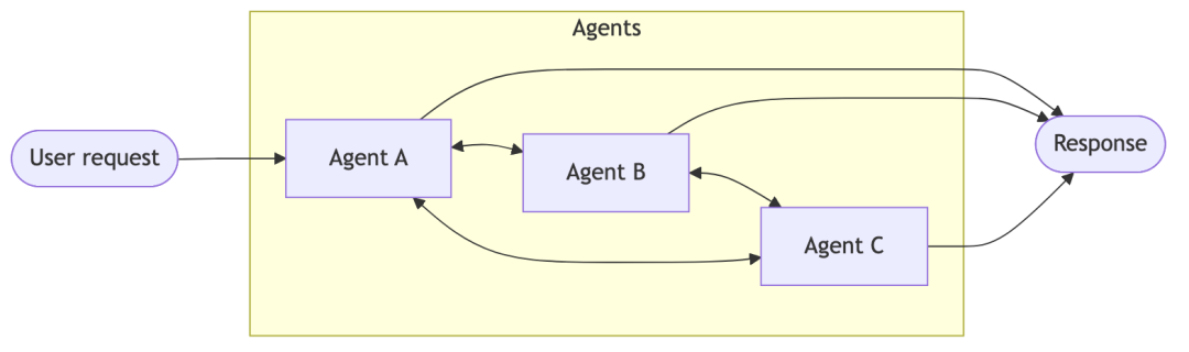- Router:在Router架构下,系统会通过一个路由步骤对输入内容进行分类,并将其分发至对应的专用智能体,随后系统将各智能体返回的结果整合为一份合并后的响应内容。这种架构在处理垂直领域场景时尤为实用 —— 即当存在多个相互独立的知识域,且每个知识域都需要配备专属智能体的情况。