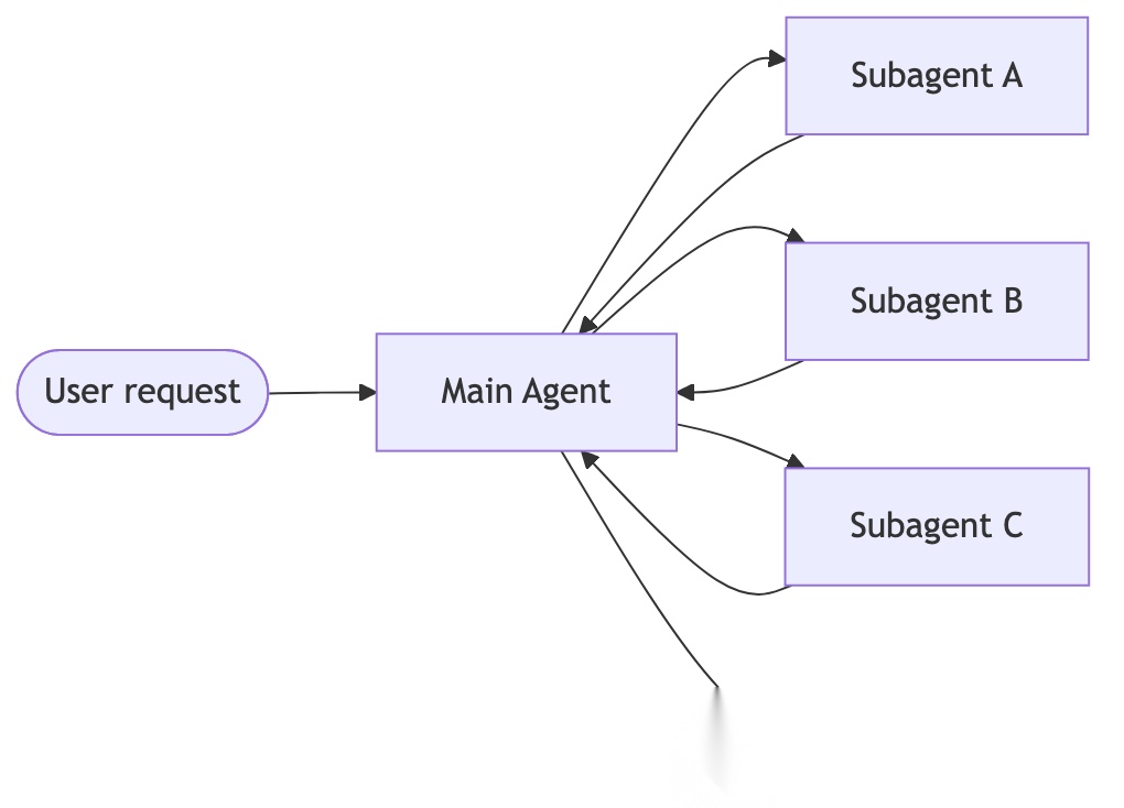 - Subagents:主智能体将子智能体作为工具进行协同调度,所有任务路由均由主智能体统一管控,由其决定调用各子智能体的时机与方式。