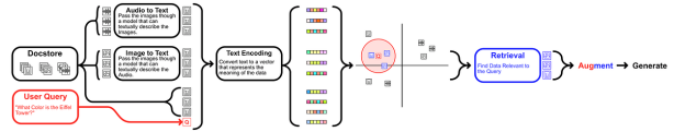 使用基础模态的多模态RAG。所有模态在传递到单个编码器之前都会转换为单个模态。