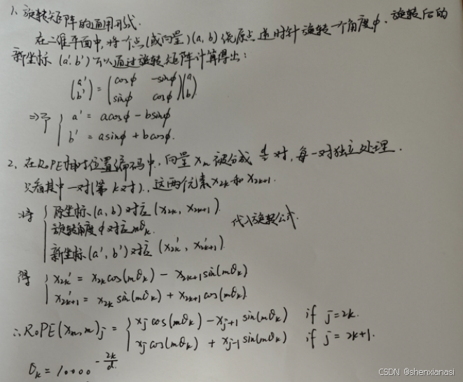 XPOS 是在 RoPE 的基础上进一步发展而来。RoPE 通过以下方式将位置信息编码到 Q 和 K 向量中: