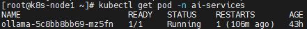 1.首先确保在集群内已经配置了ollama,pod状态是running