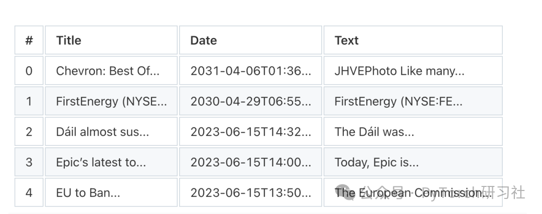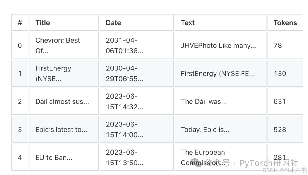 我们的DataFrame很简单(包含标题和文本,文本是新闻的描述)。我们还需要一列来存储每篇新闻文章文本对应的总token数。