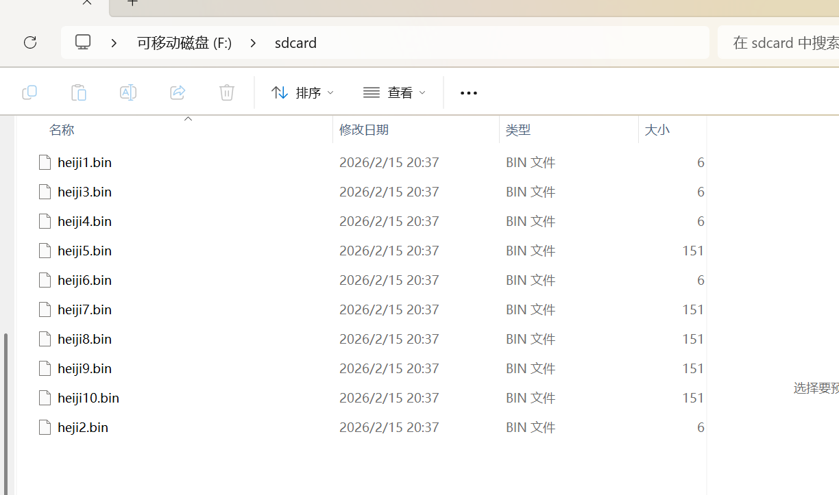 然后sd卡内创建sdcard文件夹,放入用到的bin文件即可