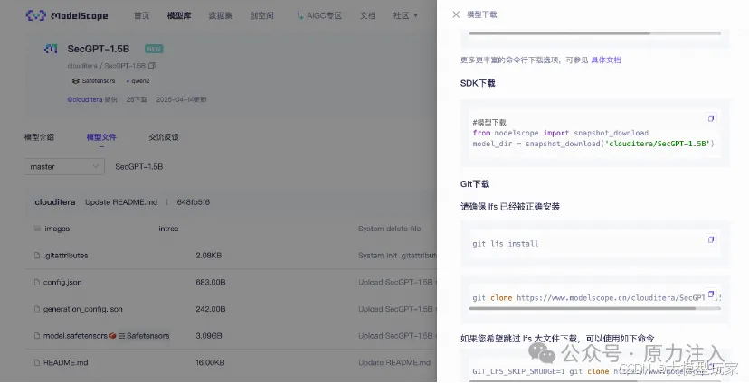 在线算力资源地址:https://www.modelscope.cn/models/clouditera/SecGPT-1.5B