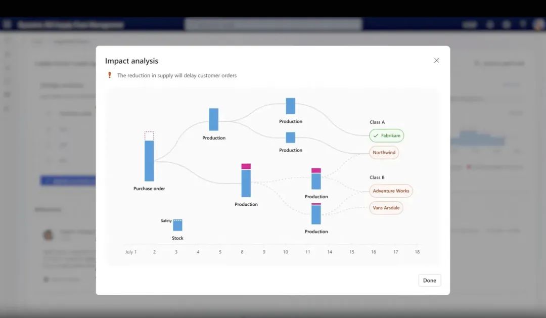 图9 微软供应链分析Agent可以自主分析供应链延迟检测