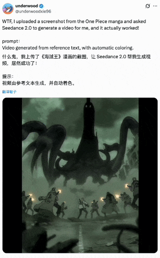 还有这位网友,只是上传了一张漫画截图,Seedance 2.0直接给他整出了一整段剧情视频,别太amazing啊我说!!