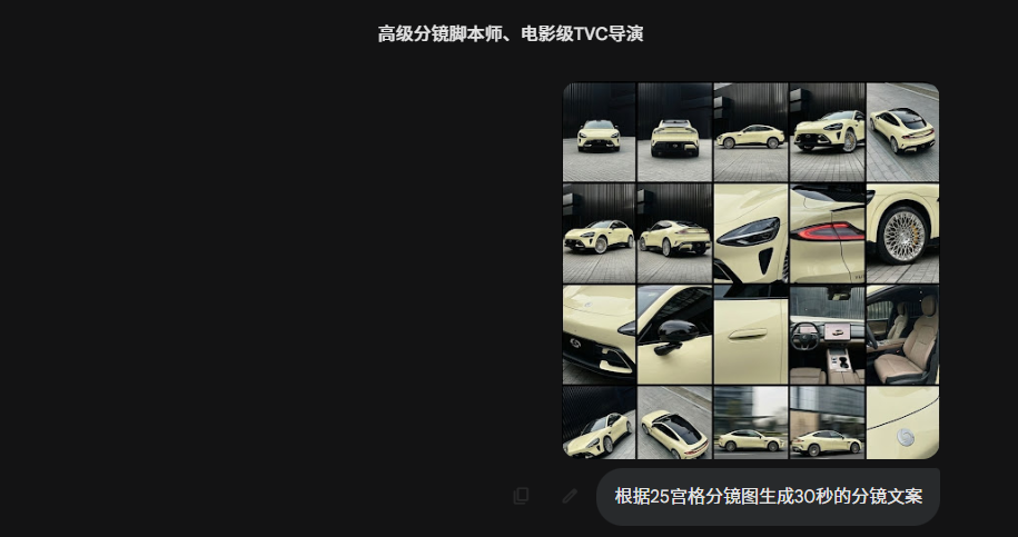 之前我分享过"九宫格分镜",但对于本次30s的宣传片来说,9宫格的信息量显然不够,所以我连夜升级,重新搭建了【25 宫格分镜智能体】。