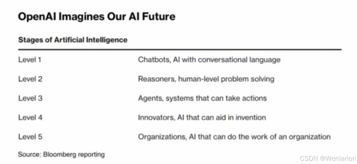 第二级:人类的推理能力,据说 GPT-5 达到,应该是 GPT-5 的大模型能力 + o1 下一代的推理能力。