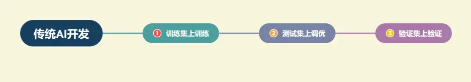 - 传统 AI 开发:构造训练集、测试集、验证集,通过在训练集上训练模型、在测试集上调优模型、在验证集上最终验证模型效果来实现性能的评估。