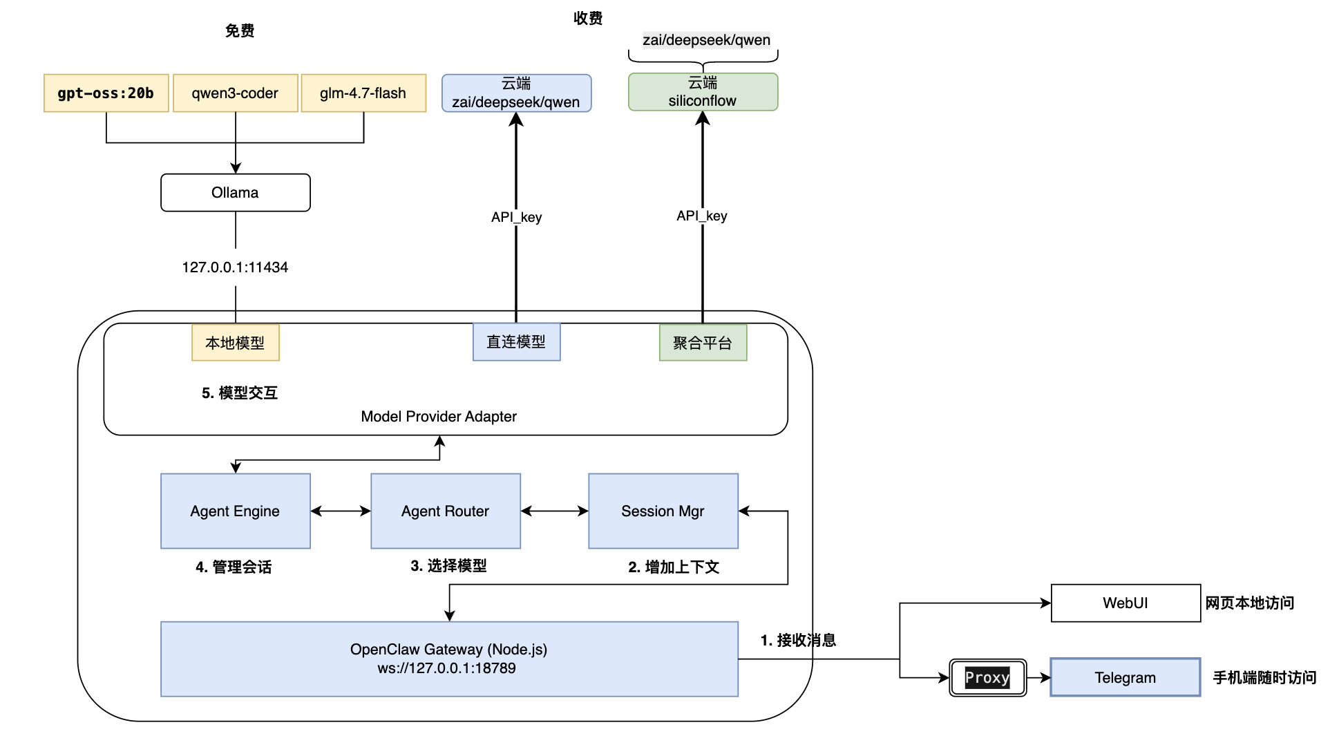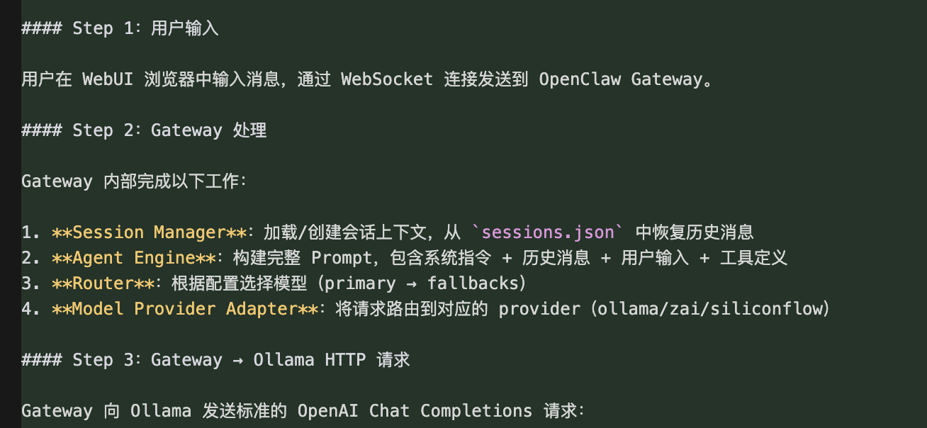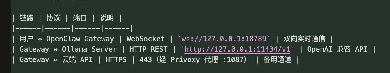 > ⚠️ 重要提示**:如果环境中设置了 `http_proxy` / `https_proxy`,在启动 Gateway 前需要清除,否则对本地 Ollama 的请求会被转发到代理导致失败:
