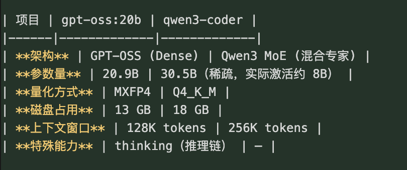 # 模型 2:qwen3-coder(18GB,擅长编程和中文)