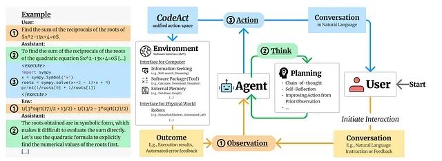 CodeAct[2] 是 2024 年的一篇论文,核心思想非常简单:既然语言模型天然擅长写代码为什么不直接让它用可执行代码来和外部世界交互?说白了就是用代码当动作空间。这个想法对任何写过程序的人来说都不陌生。