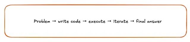 然后通过一次 LM 调用理解意图,生成 Python 代码,在编译器里跑一遍,检查输出。结果满意就直接返回,不满意就继续迭代修正,直到拿到正确答案。