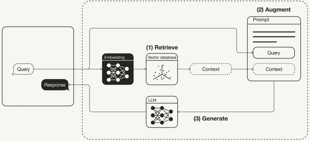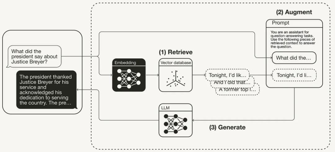 「生成(Generate)」 最后,检索增强提示被馈送到 LLM。