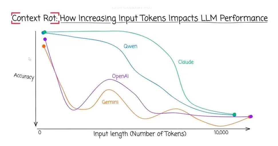 请看这张在技术圈广为流传的图表:上下文腐败**(Context Rot)**。