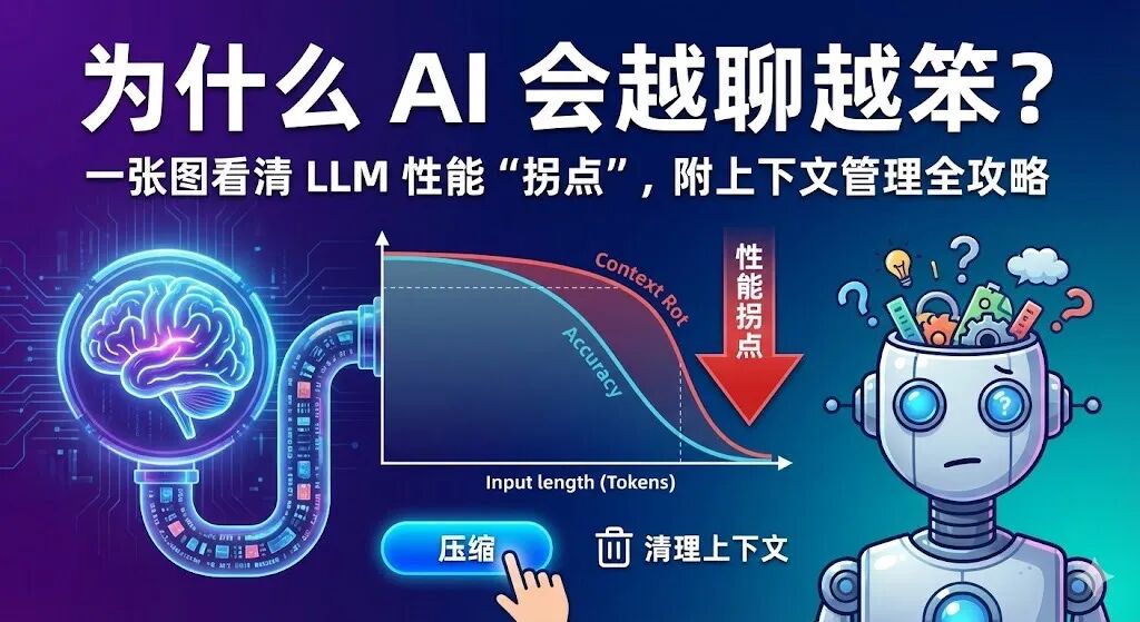 刚开始和 AI 聊天时,它还是那个“上知天文下知地理”的学霸;但聊到第 50 轮,或者让它在一个大型工程里改了几个 Bug 后,它就开始变得“间歇性失忆”——不仅忘记了你刚提的要求,甚至连最基本的代码逻辑都能写错。