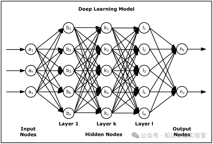 深度学习特指层数很深的神经网络。传统的神经网络只有3层:输入层、输出层和隐藏层。深度学习大幅度增加了隐藏层的层数。例如,图2中的神经网络隐藏层数为3,总层数为5。当然,神经网络的结构也不仅限于图2中的分层形态,存在很多变种,比如循环神经网络中的LSTM、为防止梯度消失等构建的ResNet、以及在大模型中广泛应用的Transformer等等。